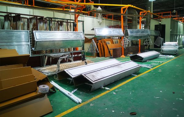 德國進(jìn)口的全長250米的全自動(dòng)噴涂生產(chǎn)線,以及木紋轉(zhuǎn)印車間。
